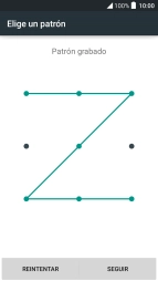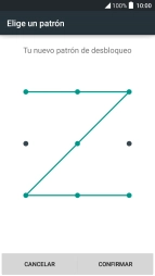 Deslizar el dedo sobre la pantalla, uniendo cuatro puntos y pulsar SEGUIR.