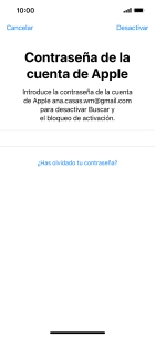 Volver a introducir la contraseña del ID de Apple y pulsar Desactivar. Esperar un momento mientras el móvil restablece la configuración predeterminada. Seguir las indicaciones de la pantalla para configurar el móvil y dejarlo listo para su uso.