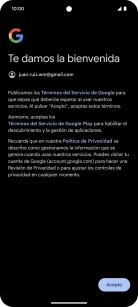 Pulsar Acepto y seguir las indicaciones de la pantalla para seleccionar los ajustes de la cuenta de Google.