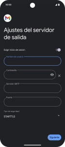 Pulsar en el campo bajo "Servidor SMTP" e introducir el nombre del servidor de correo saliente del proveedor de correo.