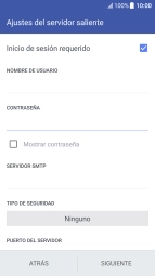 Pulsar en el campo bajo "SERVIDOR SMTP" e introducir el nombre del servidor de correo saliente del proveedor de correo.