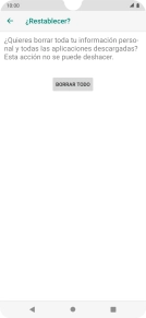 Pulsar BORRAR TODO. Esperar un momento mientras el móvil restablece la configuración predeterminada. Seguir las indicaciones de la pantalla para configurar el móvil y dejarlo listo para su uso.
