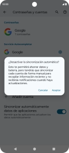Posible causa 2 de 8: Si la sincronización automática del contenido está activada, aumenta el consumo de batería.