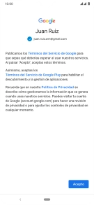 Pulsar Acepto y seguir las indicaciones de la pantalla para seleccionar los ajustes de la cuenta de Google.