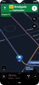 La información de la ruta aparece en la parte inferior de la pantalla y muestra la duración del viaje, la hora de llegada aproximada y la distancia al destino.