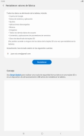 Pulsar Eliminar todo. Esperar un momento mientras la tablet restablece la configuración predeterminada. Seguir las instrucciones de la pantalla para configurar la tablet y dejarla lista para su uso.