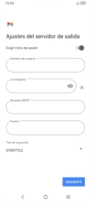 Pulsar en el campo bajo "Servidor SMTP" e introducir el nombre del servidor de correo saliente del proveedor de correo.