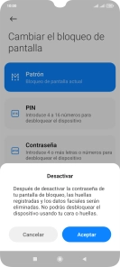 Pulsar Desactivar bloqueo de pantalla e introducir el código de seguridad adicional que se ha creado anteriormente.
