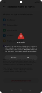 Pulsar OK. Esperar un momento mientras el móvil restablece la configuración predeterminada. Seguir las indicaciones de la pantalla para configurar el móvil y dejarlo listo para su uso.