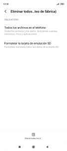 Pulsar Eliminar todos los datos (reseteo de fábrica).